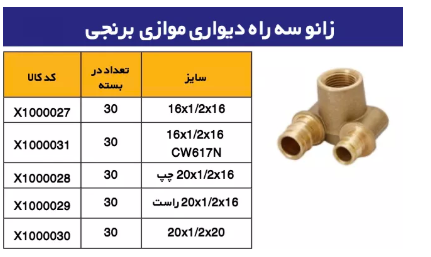 زانو دیواری موازی برنجی سایز 16*1/2*16 برند سوپر پکس